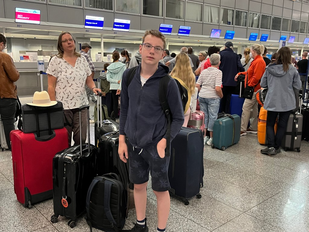 Am Samstag 06.08. war es soweit. Mit dem Taxi zum Flughafen, um dort wie auf der Homepage von Fraport aufgefordert 2.5 Std. vor Abflug beim Eincheck-Schalter zu stehen. Der Flug ging um 07.05 Uhr – wir waren um 4.15 Uhr am Schalter … – mit schon einigen vor uns.