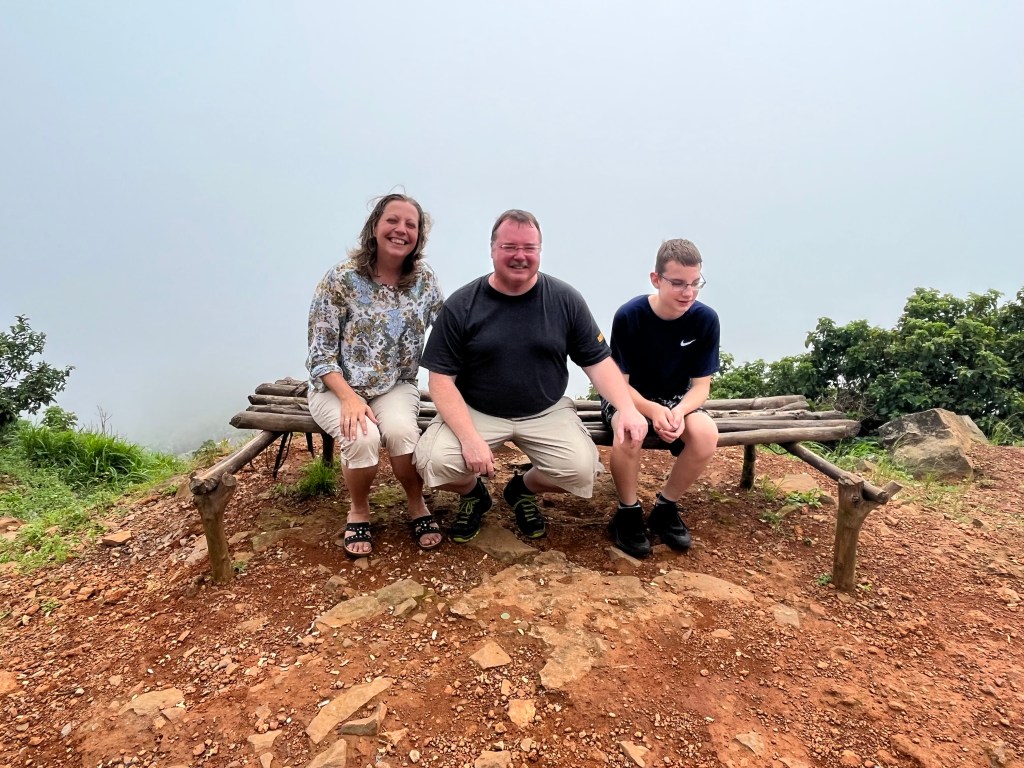 Auf der Rückfahrt machte unser Fahrer Mr. Foday so eine kleine Stadtrundfahrt mit uns – vorbei am Präsidentenpalast – dem Parlament – der ältesten Baptistengemeinde Afrikas (ca. 1795) – der US-Botschaft – der ältesten Universität Westafrikas und dem höchsten Punkt Freetowns (Leicester Peak) vorbei. Von Leicester Peak soll man einen wunderbaren und schönen Blick über Freetown haben. Als wir oben waren, hüllte uns dichter Nebel ein – die Aussicht war …. nicht vorhanden – das werden wir unbedingt nochmal wiederholen!