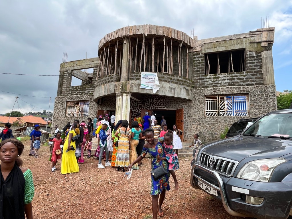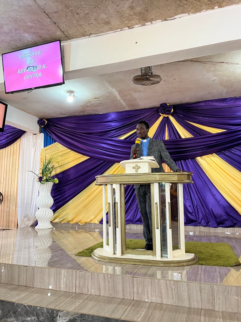 Auch hier finden von 9.15 bis 10 Uhr Bibelgruppen statt. Um 10 Uhr ist offiziell Gottesdienstbeginn. Gethsemane ist eine junge Gemeinde – ja erscheint uns fast als eine Neugründung mit einem jungen Pastor, Reverent David Conteh. Diese Gemeinde legt Wert auf Gebet und Gesang. Sie treffen sich in einem Gebäude, das sich noch im Bau befindet, und wenn wir es richtig verstanden haben, müssen Sie schon wieder umziehen, da die Schlammlawinen einiges an Schäden angerichtet haben.