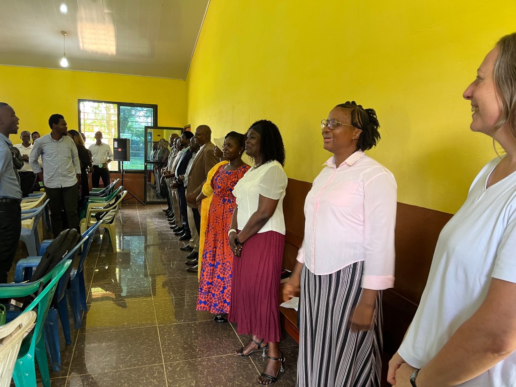 Nach all den Begrüßungen und organisatorischen Hinweisen wurde der Schwenk zur weißen Missionarsfamilie gemacht – „die ihre Komfortzone verlassen haben, um die Menschen in Sierra Leone und besonders hier am TECT zu unterstützen“.