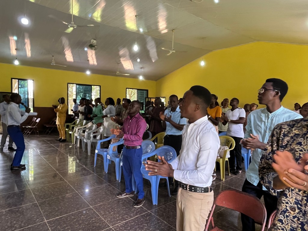 Solange es die Hymnen aus dem Liederbuch sind, ist das mit ein wenig Üben nicht so problematisch – das andere flottere Liedgut ist uns jedoch völlig unbekannt und kann nicht mal eben so begleitet werden. Zwei Studierende gehen dafür an die Mikrophone und stimmen spontan laut Lobpreis an. Der Keyboardspieler sucht daraufhin die passende Tonart, macht elektronisches Schlagzeug an und irgendwann finden alle zusammen. Dann klingt es auch richtig gut. Für den modernen Lobpreis finden sich Studierende, die das gern am Keyboard machen.
