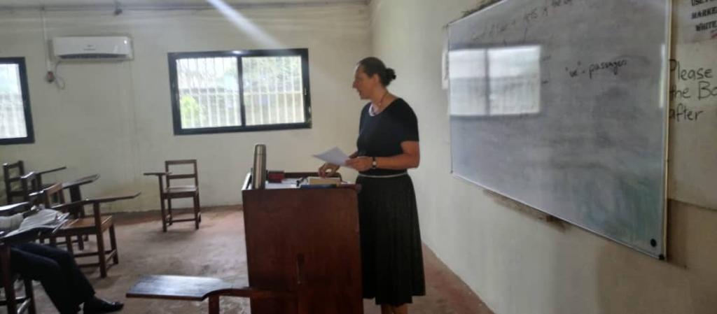 Alttestamentliche Propheten, Alttestamentliche Weisheitsliteratur und Apostelgeschichte des NT – das sind die aktuell laufenden Vorlesungen. Jede Vorlesung beginnt mit einer Andacht und Gebet. Dann wird Stoff durchgenommen, indem Christina doziert und die Studierenden mitlesen. Denn die Unterrichtsnotizen werden möglichst vorher an alle verschickt. Jederzeit können Fragen gestellt werden. Der letzte Teil einer Vorlesung besteht in Stillarbeit und der Bearbeitung einer Aufgabe am Bibeltext, die am Ende miteinander besprochen wird.