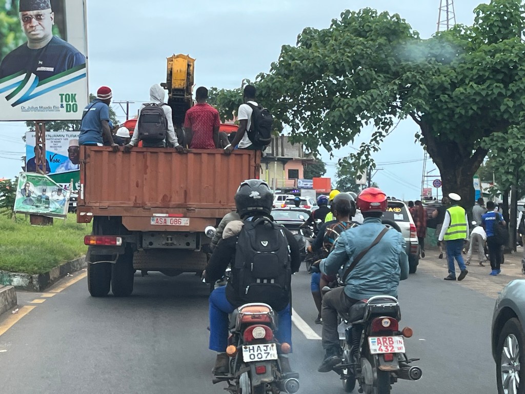 Gegen 9 Uhr kam dann auch der versierte Fachmann und wir liefen wieder zur Junction, um nach Downtown Freetown zu fahren – aber mit was? Welches Fahrzeug hat für drei Personen noch Platz?