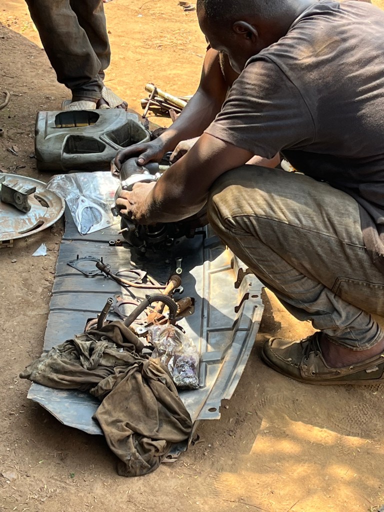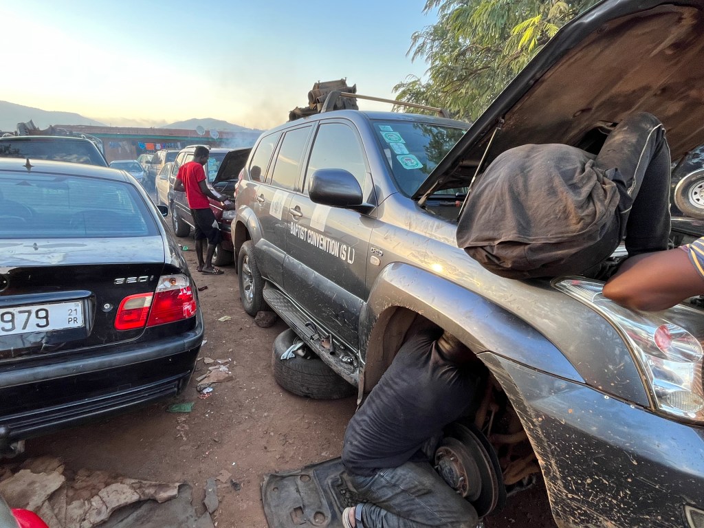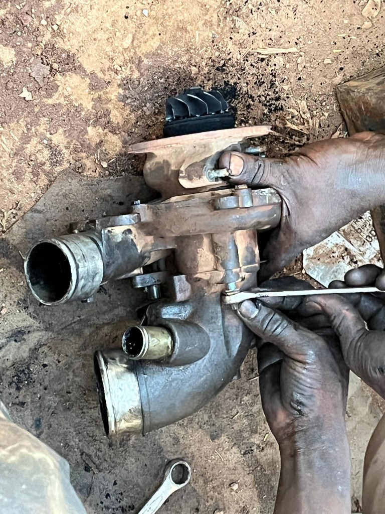 Wir schafften es trotzdem und riefen Amadu, unseren Campus Autoreparateur an – schilderten ihm das Problem und baten darum, dass er sich das Auto am Freitagmorgen mal anschaut.