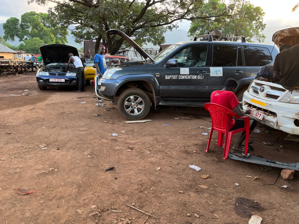 Wir machen hier Schluss und morgen früh treffen wir uns alle drei, um nach Downtown Freetown zu fahren und ein Ersatzteil zu kaufen.