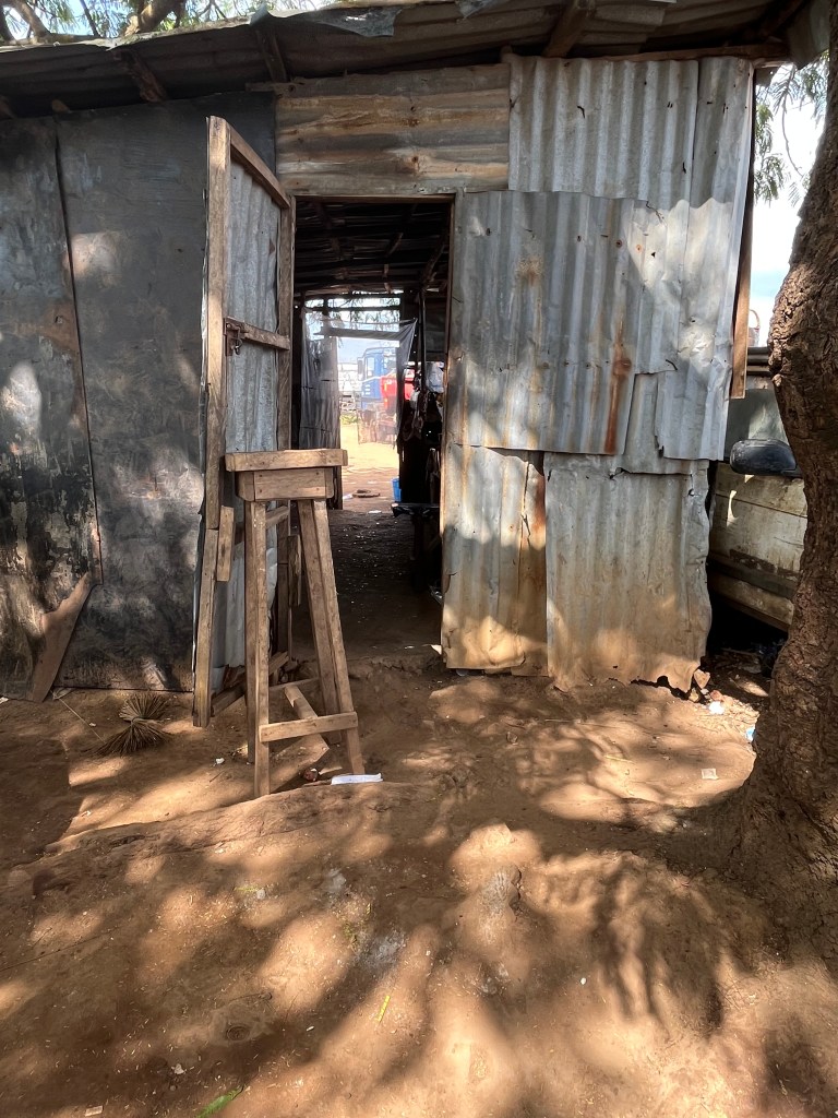 Bei der Durchfahrt über das Gelände und Umschauen stellte Ralf fest, dass es unzählige Parzellen waren, in denen Menschen an Autos schraubten – Taxis – Busse – LKWs und Privatfahrzeuge. Es gab keine Werkstatt mit professionellem Werkzeug oder Prüfgeräten – keine Hebebühne. Der freie Platz war die Werkstatt – der Wagen wurde notfalls auf Holzstücken aufgebockt, mit Steinen gesichert, und dann hatte man ganz schlichtes Werkzeug.