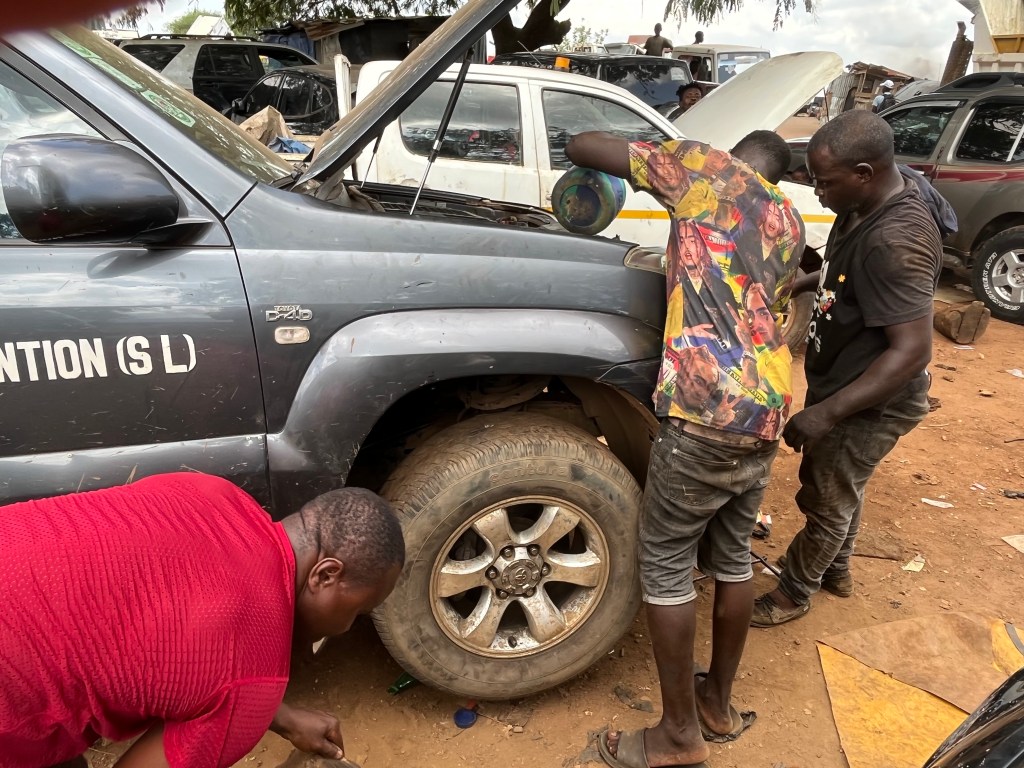 Die meisten Menschen in Sierra Leone haben kein Geld für teure und aufwendige Reparaturen und so lernen sie zu improvisieren und möglichst günstige Hilfen zu finden. Dort suchte Amadu.