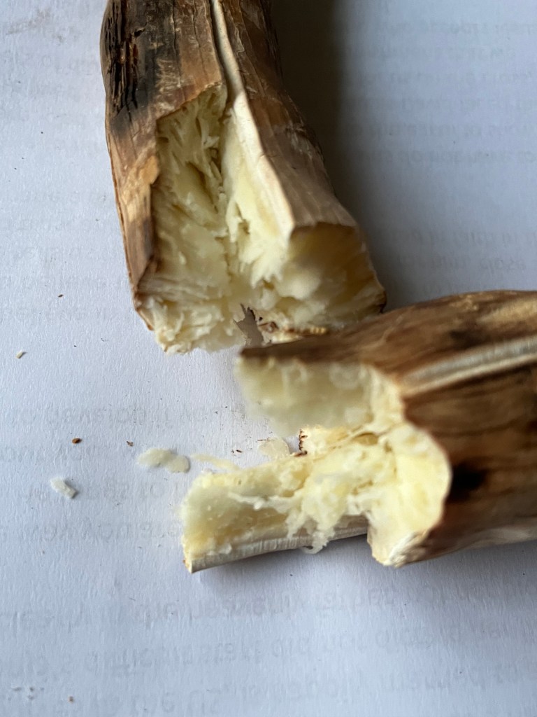 Ralf ist ja experimentierfreudig und ihn interessiert, wie Leute leben und auch was sie essen – also nahm er es in der Haltung von 1. Tim. 4,4 an. Es schmeckte lecker – ein wenig nach Kartoffel, ohne Kartoffel zu sein. Ralf vermutet, es war Cassava, eine Maniokpflanze.