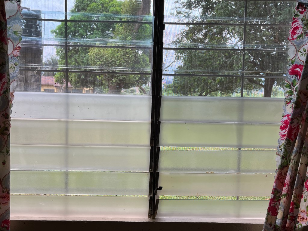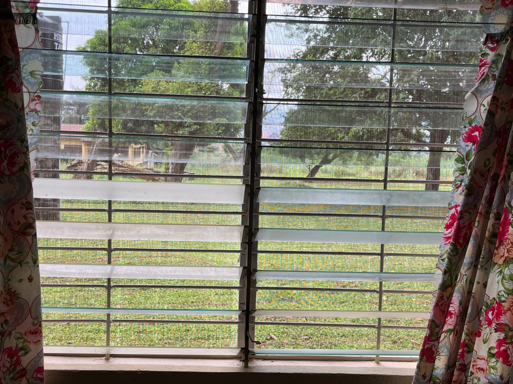 Das Haus hat viele Fenster und ist dadurch hell und freundlich. Die Fenster haben keine durchgehende Glasscheibe, sondern sind ein Konstrukt, das aus einzelnen Glaslamellen besteht, die man mit einem mechanischen Hebel etwas öffnen oder schließen kann. Komplett lässt sich diese Vorrichtung nicht schließen. Bei den hiesigen Temperaturen soll dies die Windzirkulation und damit Kühlung der Innenräume unterstützen.