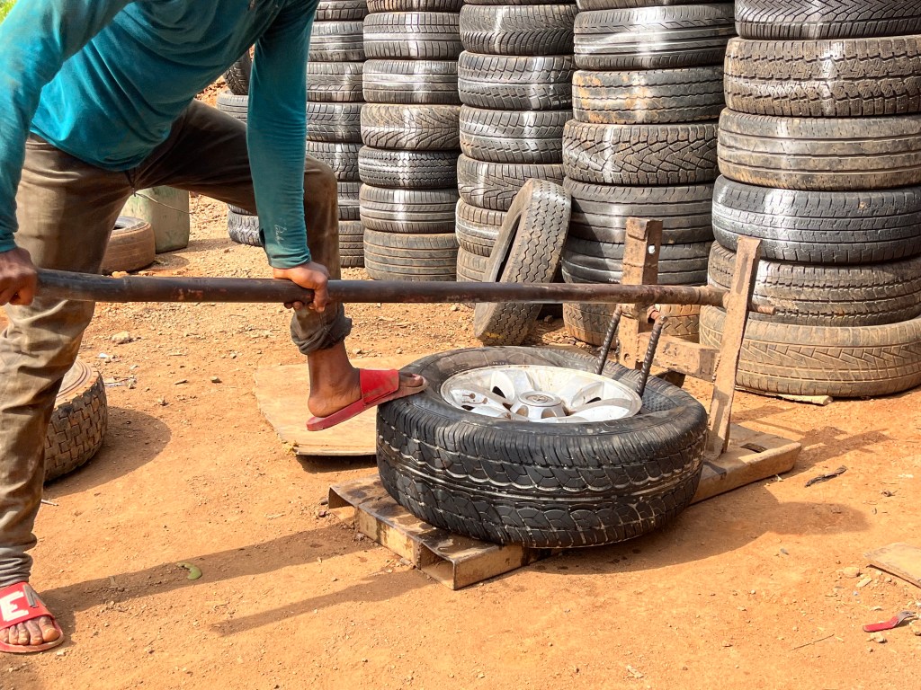 Als Ralf nun zum wiederholten Mal – diesmal wegen der Klimaanlage des Autos – in der „Werkstatt“ war, hat er die Zeit der Reparatur genutzt, um sich etwas umzuschauen. Dabei hat er einen „Laden“ gefunden, wo er einen Feuerlöscher, ein Warndreieck und einen Spanngurt kaufen konnte – mit freundlicher Hilfe eines der jungen Männer, die beim Autoreparieren herum standen.