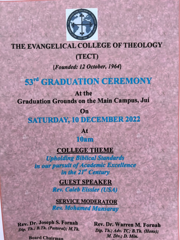 Für einige Dozenten geht es nun an andere Ausbildungsstätten, um dort Blockunterricht zu gestalten. Wie für Christina, die am Sonntag nach Lunsar zum Bibelseminar der Baptisten aufbricht. Dort wird sie für eine Woche unterrichten – zum ersten Mal. Spannend – aufregend und mal sehen wie die Woche verlaufen wird.