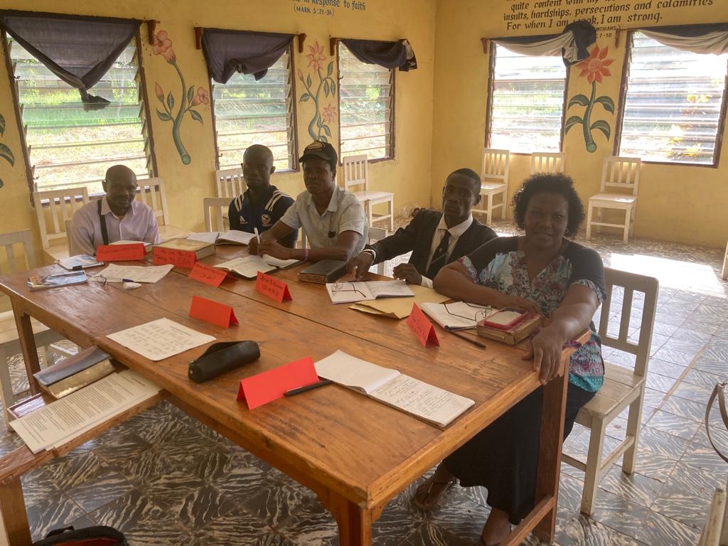 Zunächst waren nur 2-3 Studierende da. Weitere würden später anreisen. Alle Studierenden dort sind bereits als Hilfspastoren tätig und werden berufsbegleitend ausgebildet. Einige hatten Notfälle in ihren Gemeinden, andere mussten zunächst das Geld für den Transport quer durchs Land auftreiben. In kleinen Landgemeinden müssen sie nebenher noch anderweitig ihren Lebensunterhalt verdienen, weil die Bezahlung zu gering ausfällt. Für diese Gemeinden ist es auch eine Herausforderung, die Fahrtkosten und Verpflegungskosten für die Blockseminare am Baptistenseminar zu stemmen, gerade in dieser wirtschaftlich angespannten Zeit. Früher, so erfuhren wir übernahm der BCSL die Kosten für Unterkunft und Verpflegung, das hatte sich nun geändert und so ist für viele PastorInnen eine Teilnahme kaum noch möglich. Die Anzahl der Studenten wuchs auf 8 Teilnehmende an, was jedoch bis Ende der Woche aufgrund mehrerer Todesfälle in den Gemeinden wieder weniger wurde, wo zwei Studierende spontan hin mussten.