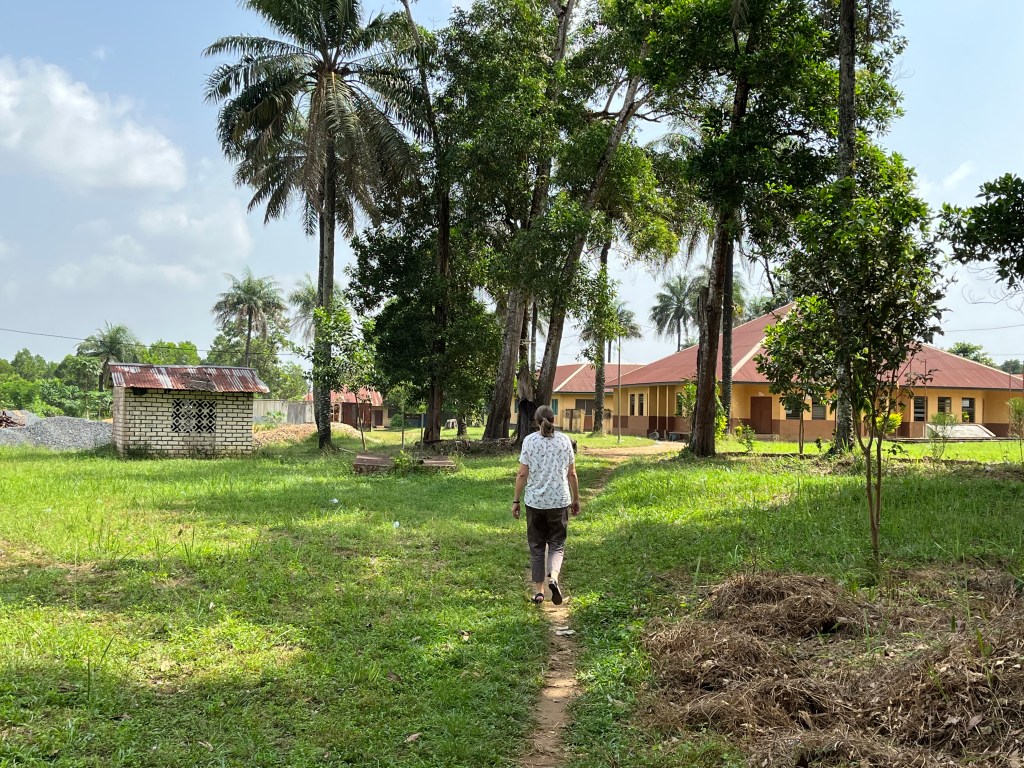 Den Weg von Oosterloos zum Unterrichtsort ging Christina mehrmals täglich zu Fuß, er dauerte kaum 5 Minuten. Für die Bewohner des Ortes war eine weiße Frau zu Fuß ein ungewohnter Anblick. Kinder kamen herbeigelaufen, riefen das einheimische Wort für „weiß“, berührten ihre Haut und tanzten um sie herum. Bikes blieben stehen, um eine Mitfahrgelegenheit anzubieten, und alle grüßten freundlich. Ein junger Mann bot spontan seine „Freundschaft“ an und wollte direkt ihre Whatsapp-Nummer (vergeblich). Der Weg war kurz, aber trotzdem ist man in Schweiß gebadet und braucht eine Weile, um wieder herunterzukühlen.