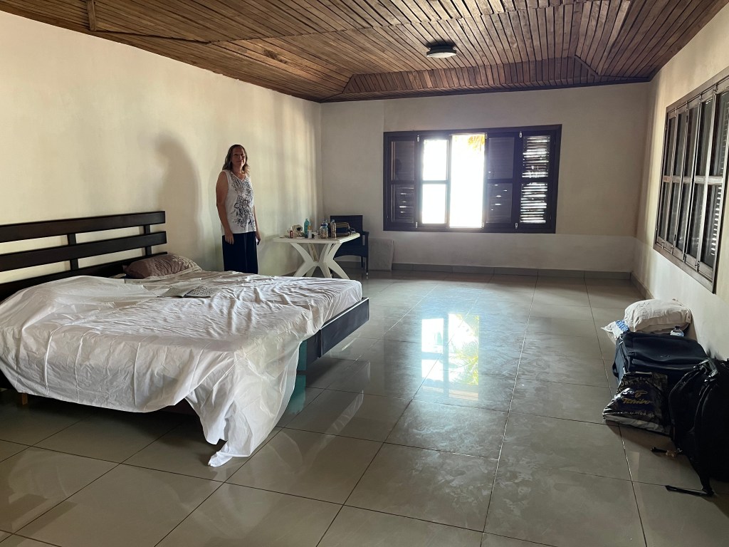 Wir hatten zwei großzügige Zimmer – also sie waren wirklich geräumig – aber sehr spartanisch eingerichtet (Bett, ein Stuhl, eine kleine Ablagebank, ein Nachttisch und eine Garderobe). Strom gab es nur von 19 – 7 Uhr – damit man im Dunkeln Licht und zum Schlafen die Klimaanlage nutzen kann. Auch wenn es nur spärlich eingerichtet war und unsere meisten Sachen auf dem Boden lagen, war es für diese Zeit ausreichend. Wir hatten ca. 5 Meter zum Strand und 20 Meter zum Meer, das Haus war gesäumt von Palmen und anderen Bäumen, die Schutz vor der Sonne gaben. Das Wasser hatte Badewannentemperatur und nur morgens war es etwas frischer. Zu beiden Seiten konnten wir lange Strandspaziergänge in herrlicher Natur machen. Die Verschmutzung hielt sich in Grenzen. Es gab eine herrliche Brandung und immer einen leichten Wind. Wir alle haben das richtig genossen!