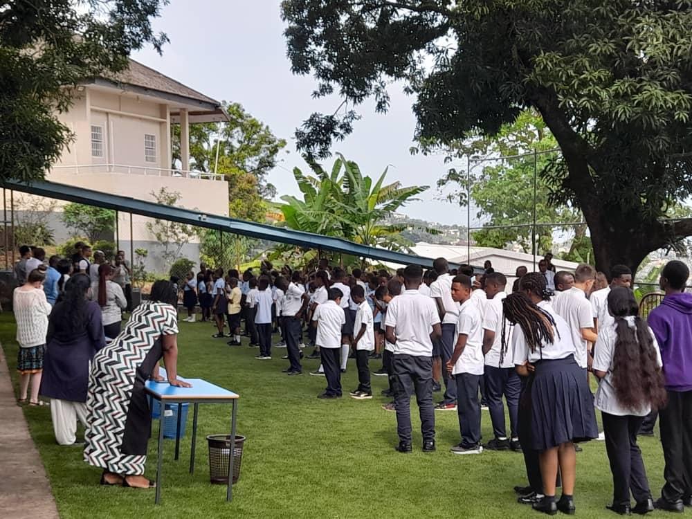 Wenn Nathanael zur Schule gebracht wird, fahren wir meist um 7 Uhr los und sind in der Regel 7.45 Uhr an der Schule. Man biegt von der Hauptstraße links ab und über eine kurze Auffahrt auf das Schulgelände. Am Ende ist ein kleiner Kreisel. Dort werden die Kinder aus dem Auto in Empfang genommen – Fieber gemessen und in ihre Klassen geschickt. Da nicht alle zur gleichen Zeit ankommen, geht es morgens reibungslos und ohne Wartezeiten.