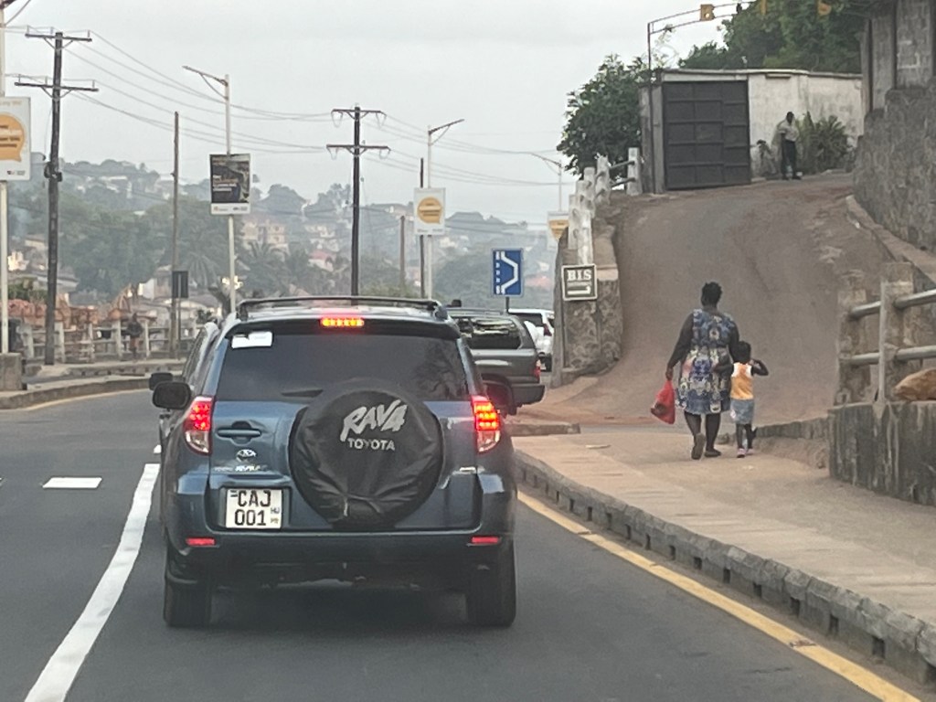 Wie unter der Woche üblich, fährt Ralf kurz vor 14 Uhr los, um Nathanael von der Schule in Freetown abzuholen, die um 15 Uhr Schluss hat. Die Schule liegt an einer der Hauptrouten in die Innenstadt von Freetown. Es gibt jeweils zwei Fahrspuren den Berg rauf bzw. nach Downtown runter.