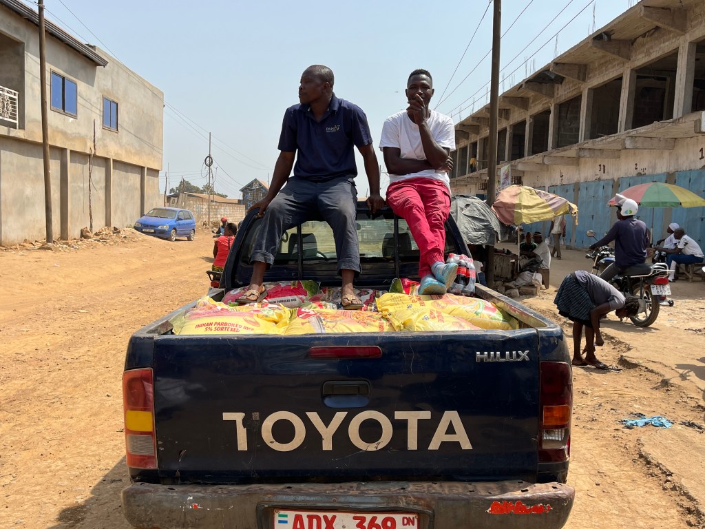Also fuhr Ralf am Freitag, nachdem er Nathanael zur Schule gebracht hatte, auf dem Rückweg noch einmal über den Markt, stoppte und kaufte vorsichtshalber noch mal fünf 25 Kg Sack Reis – man weiß ja nie. Anschließend ging es mit der Frau vom Rektor und dem Fahrer zum Markt, um 50 Gallonen Öl, zwei Sack Salz (mit vielen kleinen Salzpaketen), vier Säcke Zwiebeln und 16 Packungen „Maggie“ zu kaufen.