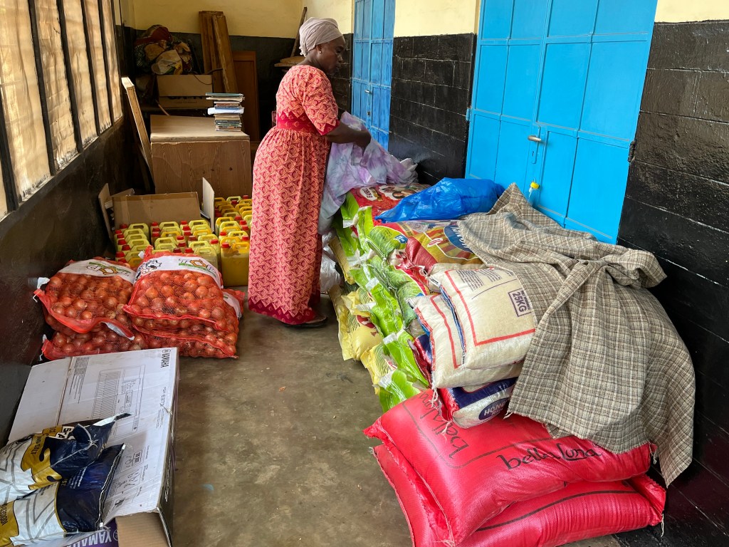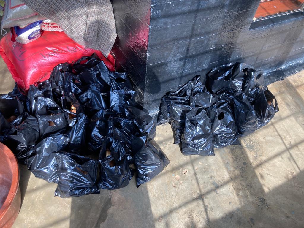 Salz, Zwiebeln und Maggie wurden in 52 kleine Tüten verpackt. Die Wohnheime der ledigen Studierenden sollten neben den großen 50 kg- Säcken Reis je zwei Gallonen Öl und zwei Tüten Sonstiges bekommen. Denn dort leben deutlich mehr Personen als in einer Familie.