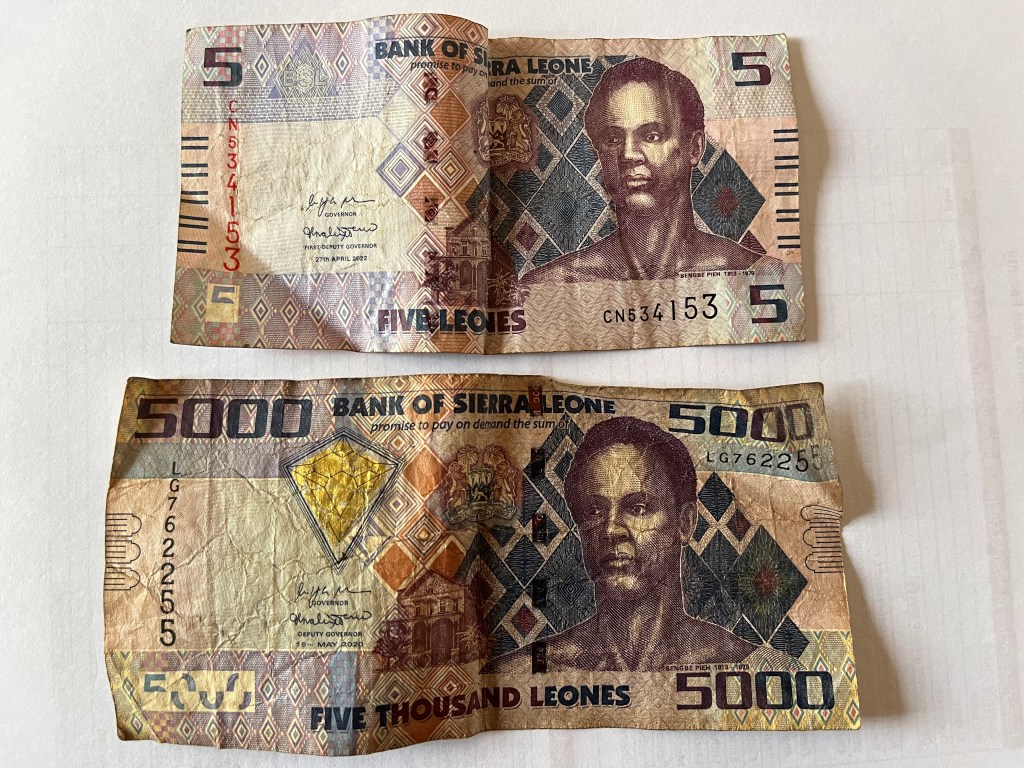Wenn wir also 30.000 oder 40.000 Leones abheben, ist der sprichwörtliche „Sack voll Geld“ eine ziemlich genaue Beschreibung dessen.
