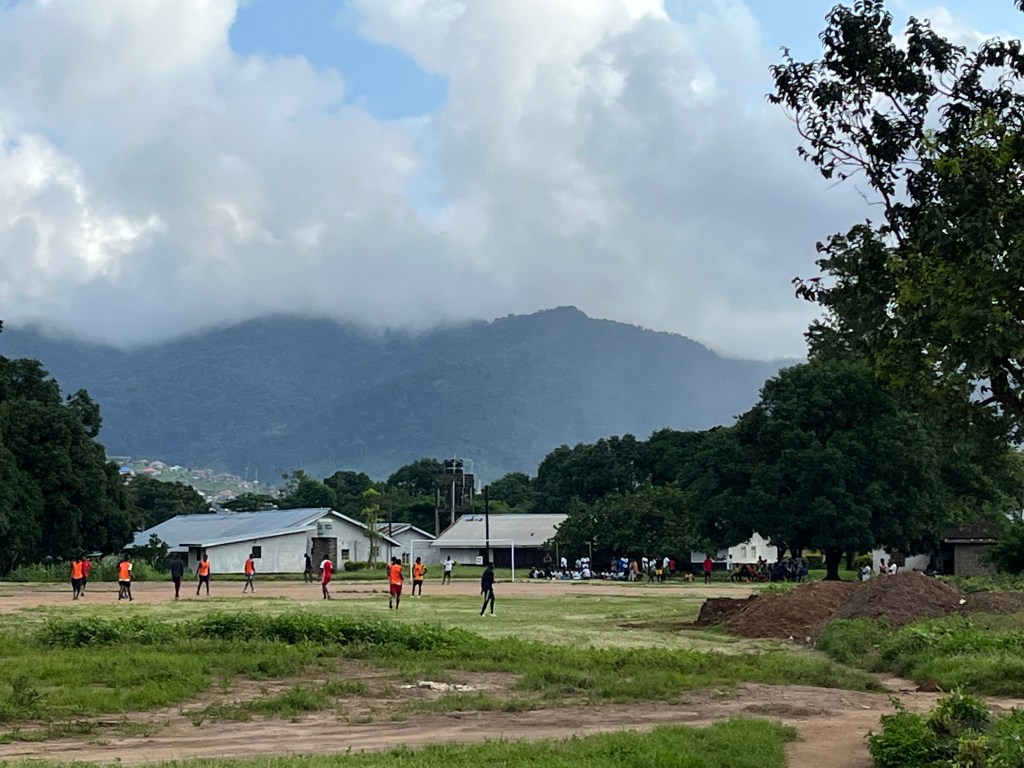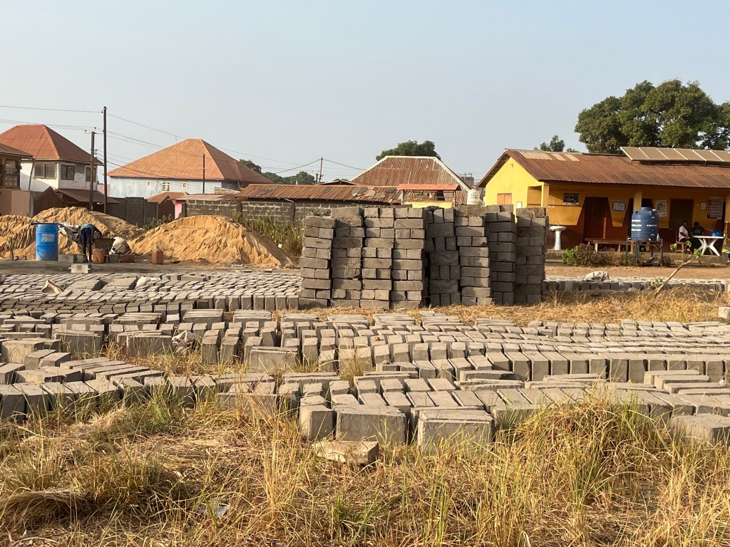 Sand, Zement und Wasser werden vermischt, in eine Form gegossen, das Ganze muss trocknen und dann noch etwas stehenbleiben, schwupps, ein Mauerstein ist fertig! Insgesamt sollen sie erstmal 5.000 Stück fertigen. Damit soll dann das letzte Teilstück der Mauer an der Straße gezogen werden. Für die gesamte restliche Mauer um das Gelände herum jedoch werden ca. 10.000 Steine benötigt – aber erstmal anfangen. Small small. Es ist wichtig, dass die Studierenden sehen, wofür sie gesammelt und gegeben haben.