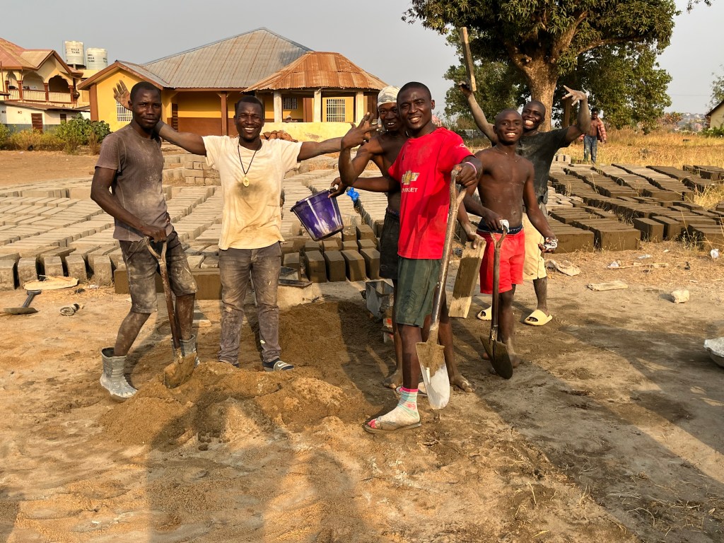 Es ist wirklich unglaublich, den Berg an Ziegeln wachsen zu sehen. Von ein paar Duzend – über Hunderte und dann sind da nach ein paar Tagen 5.000 Ziegel gestapelt und das bei tropischen Temperaturen, praller Sonne und kein Fitzelchen Schatten. Außerdem haben wir Ramadan – wie Moslems diesen bei der Hitze und körperlichen Arbeit einhalten, wissen wir nicht. Wir schwitzen schon beim Stehen. Sie beginnen morgens gegen 10 Uhr und beenden den Tag abends gegen 19 Uhr. Den ganzen Tag Mauersteine herstellen. Ein Knochenjob.