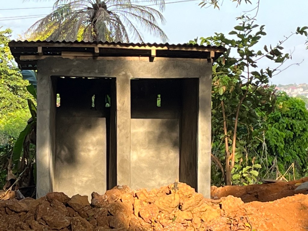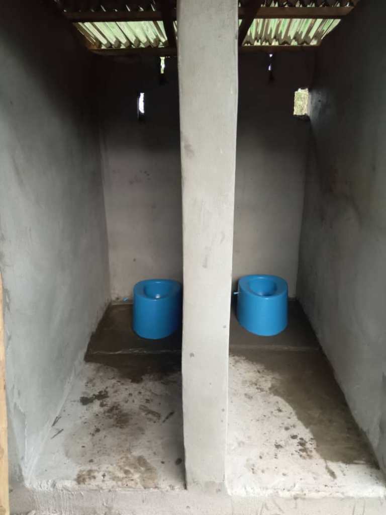 Bei den beiden Doppeltoiletten kam erst der Aushub von 15 Fuß (mehr als 4m tief) – dann das Mauern – die Bodenplatte – die Häuschen – Innenausstattung und schließlich das Dach zu sehen. Nun sind zwei der insgesamt drei geplanten Plumpsklos fertig und an die umstehenden Bewohner zur Nutzung übergeben worden. Eine große Erleichterung, als nun die dringend benötigten Fazilitäten fertig waren. Für das dritte Doppelhäuschen muss erst noch Geld zusammenkommen.