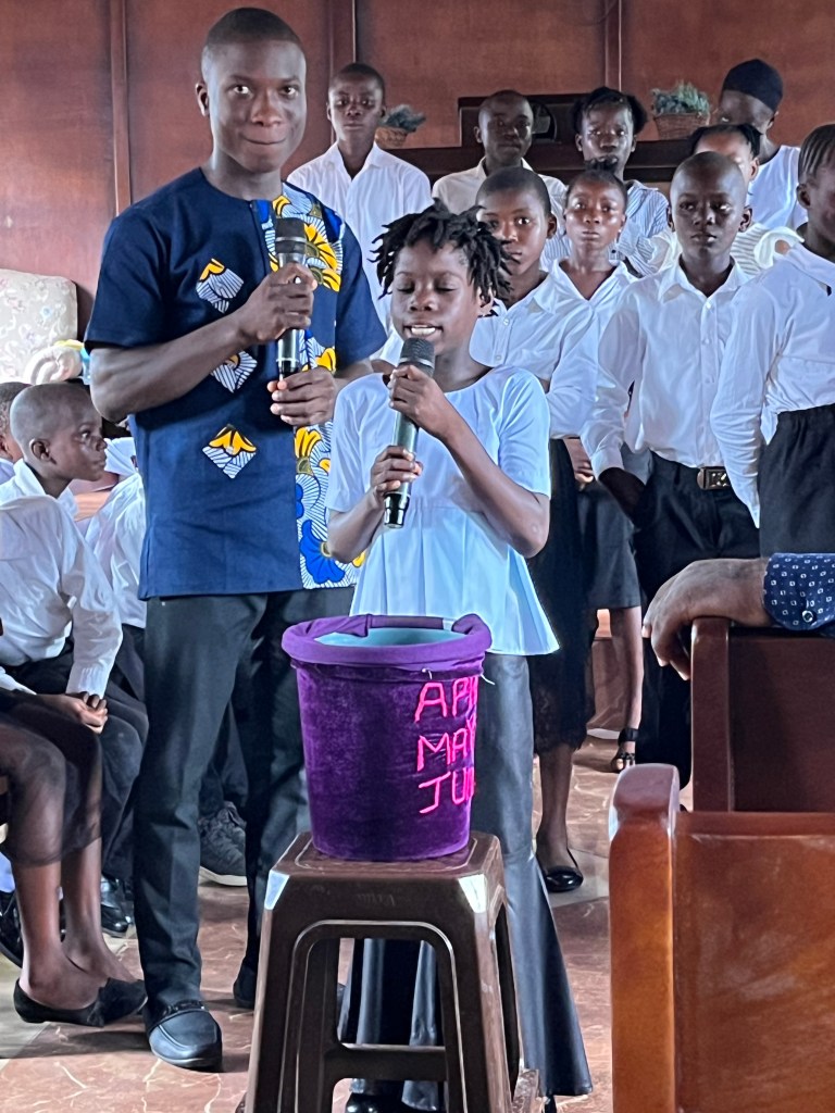 Es hat uns gut getan, so freundlich willkommen geheißen zu werden. Christina wurde von den Mitgliedern der Frauengruppe sogar umarmt – zum ersten Mal in Sierra Leone! Es hat uns außerdem gefreut, so viele bekannte Gesichter lebend wieder sehen zu dürfen. Wir haben uns über den Mut von Pastor Abu gefreut, der diesen Gottesdienst ganz in die Hände der Kinder und deren Mitarbeiter gelegt hat – mögen mehr Gemeinden, die eine Zukunft haben wollen, diesen Mut aufbringen – Kinder an die Macht!