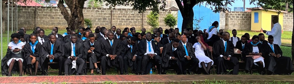 Wenn ein Baptistenpastor/ Pastorin in Rente geht, gibt jeder Kollege 200 Leones und jede Gemeinde 500 Leones (des gesamten Gemeindebundes). Soweit wir das verstanden haben, ist das eine Altersabsicherung. Wie das mit Rente und Finanzen funktioniert, haben wir tatsächlich bei allem Nachfragen noch nicht durchschaut, aber was wir hören, erscheint abenteuerlich unterirdisch. Deshalb sorgen in der Regel die Gemeinden, in welcher der letzte Dienst war, für etwas Unterstützung.