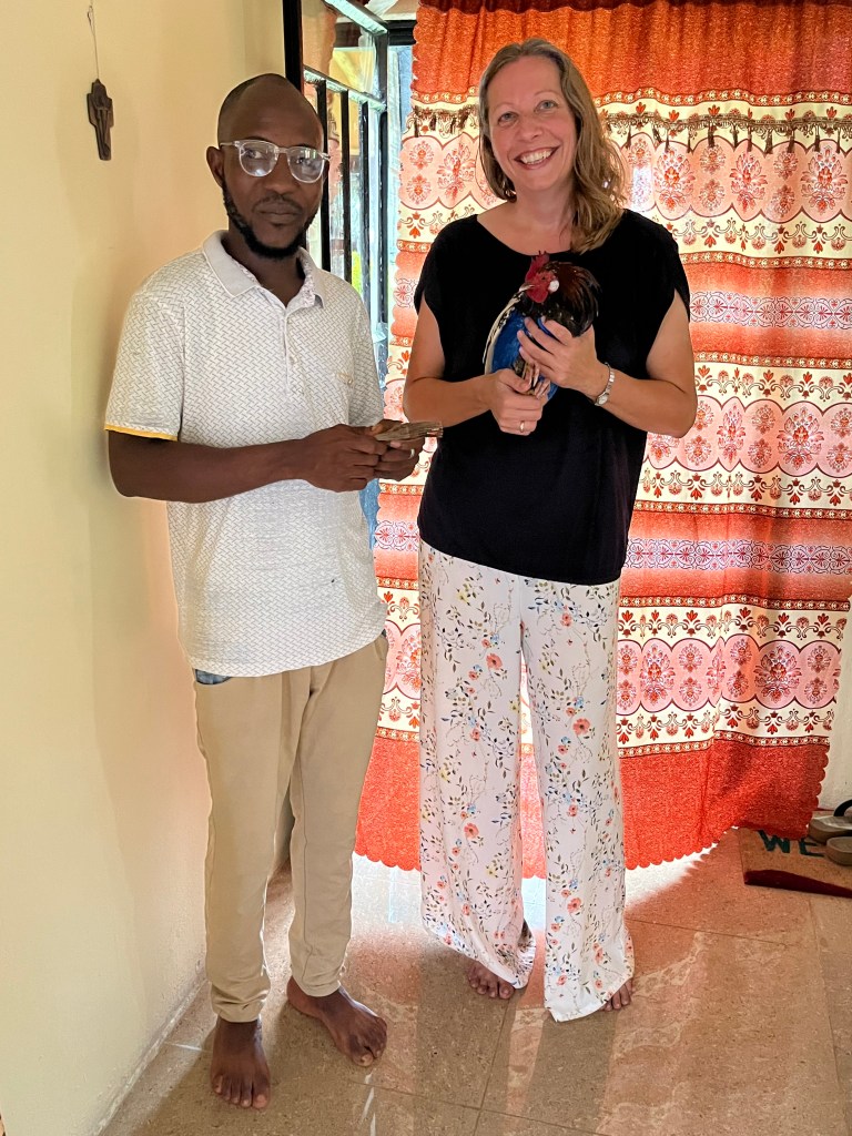 Nun hatten wir also einen Hahn – was nun – eine Hühnerzucht, ein neues Haustier – oder das nächste Mittagessen. Wir entschieden, Emmanuel – einen Theologie Abgänger anzurufen, der im übrigen immer noch nicht an seine Einsatzort gehen kann und mit seiner hochschwangeren Frau, in der Luft hängt – unbegreiflich – leider wahr.