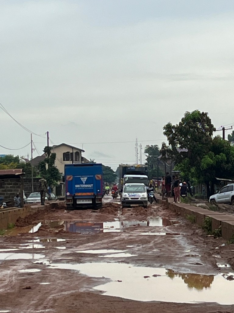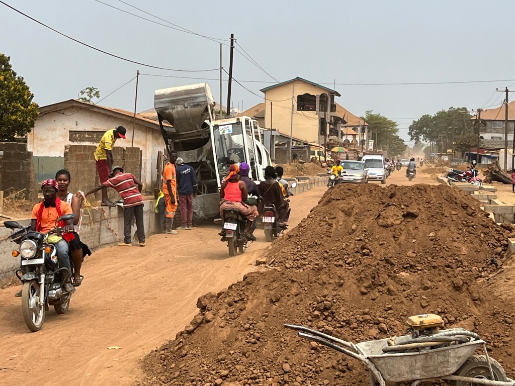 Ralf machte sich wieder auf dem Rückweg und nach wie vor hatte sich nichts an der Situation verändert. So parkte er erneut den Wagen an der Straße (vor dem Hindernis), um dann wieder mit dem Bike, diesmal etwas weiter, nach Jui – zu Wendy einer US-Missionarin – zu fahren. Am Tag zuvor war Ralf mit der Buchhalterin vom T.E.C.T. in Freetown gewesen, um Büromaterial zu kaufen und dann noch im Hauptsitz der Rokelbank offizielles Geld vom T.E.C.T. (Studiengebühren) einzuzahlen. (Das war ein zeitintensives Abenteuer – die Schlangen bei der Bank waren lang, die Sachbearbeiterin s e h r g e w i s s e n h a f t (soll ich das Geld nachzählen – hast du es gezählt – soll ich doch lieber – vertraue ich dir – ich vertraue dir – Kontrolle ist besser – ist es auch wirklich der genannte Betrag ….) und so dauerte alleine dieser Gang knappe 2 Stunden. Hier muss man immer sehr viel Zeit mitbringen.)
