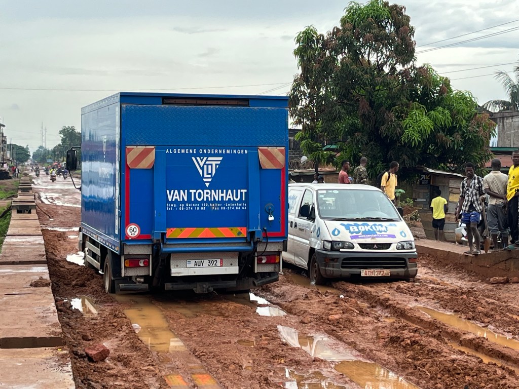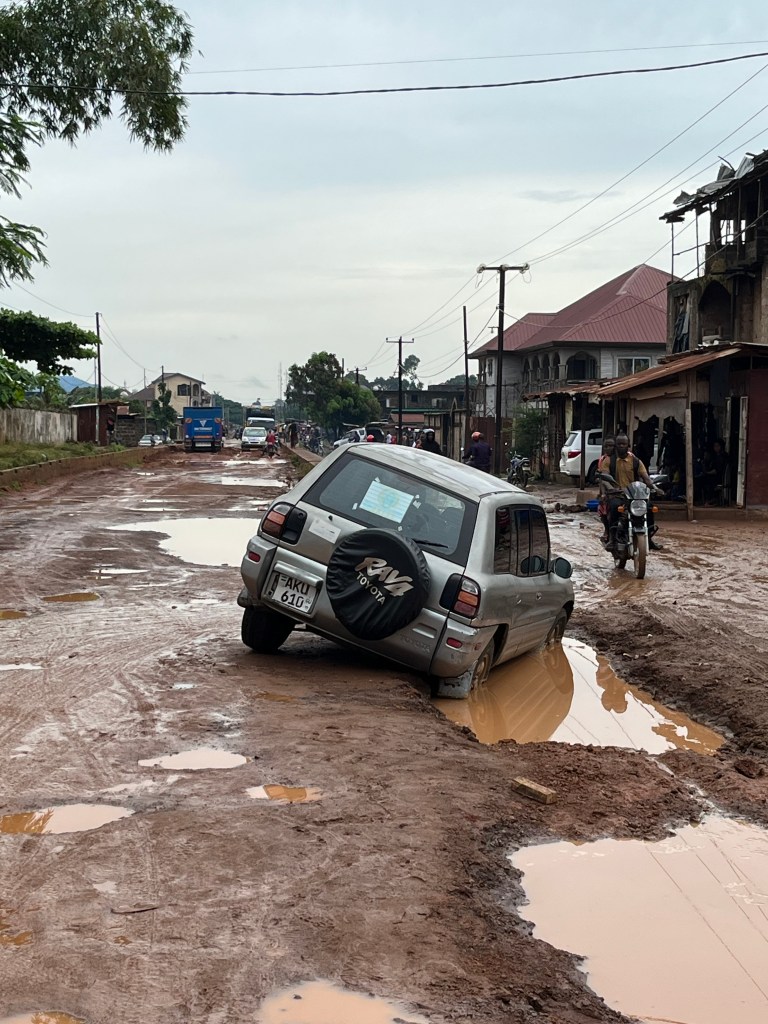 Ralf ließ den Wagen einfach an der Straßenseite stehen, nahm ein Okada (Motorradtaxi) und ließ sich von diesem über Stock und Stein – durch Schlamm und Wasserpools zum T.E.C.T. fahren.