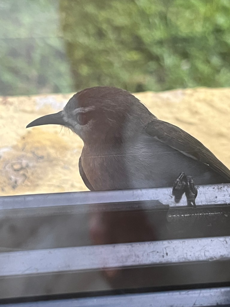 Das irritiert manche der Vögel in unserer Nachbarschaft. Irgendwann hörten wir immer ein Klopfen oder Schlagen an den Fenstern und konnten das erstmal nicht einordnen. Als sich das regelmäßig wiederholte, erkannten wir, dass verschiedene Vögel – einzeln oder zu zweit – auf den Gittern vor den Fenstern sitzen und gegen das Fenster flogen oder hackten – manchmal sah es so aus als hätten die sich da verfangen – was jedoch nicht so war.
