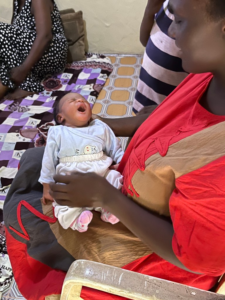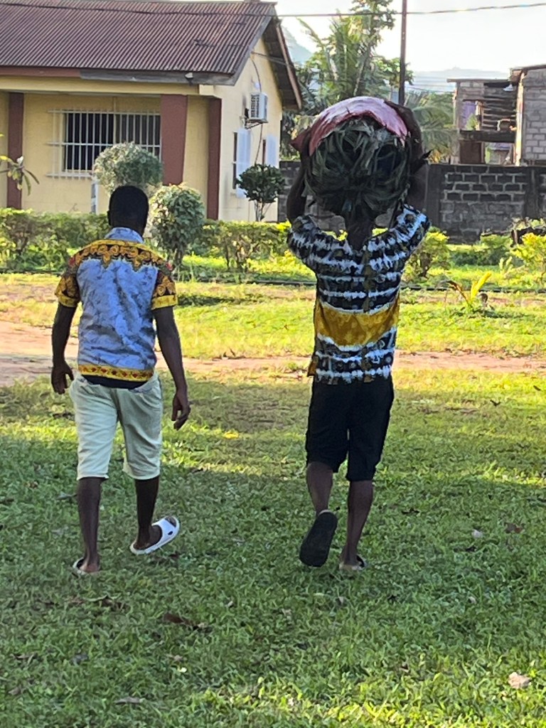 Noch etwas Bewegendes zum Schluss. Hier ist es üblich, wenn in einer Familie oder Dorfgemeinschaft (Fambul) ein Mensch stirbt oder geboren wird, zeitnah vorbeizuschauen, zu trauern oder zu gratulieren, ein Geschenk mitzubringen und zu beten. So machten wir uns auf den Weg zur Familie von Smart, nachdem Mutter Gloria mit der Neugeborenen aus dem Krankenhaus zurückgekehrt waren. Smart selber war nicht da, aber wir konnten kurz mit Gloria und den Kindern sprechen und das neugeborene Mädchen willkommen heißen. Wie sie denn heißt, wollten wir wissen? Das müsst ihr Smart fragen! In dieser Kultur ist das durchaus üblich und etliche Neugeborenen erhalten erst einige Zeit später ihren Namen – bei der Kindersegnung in der Gemeinde.