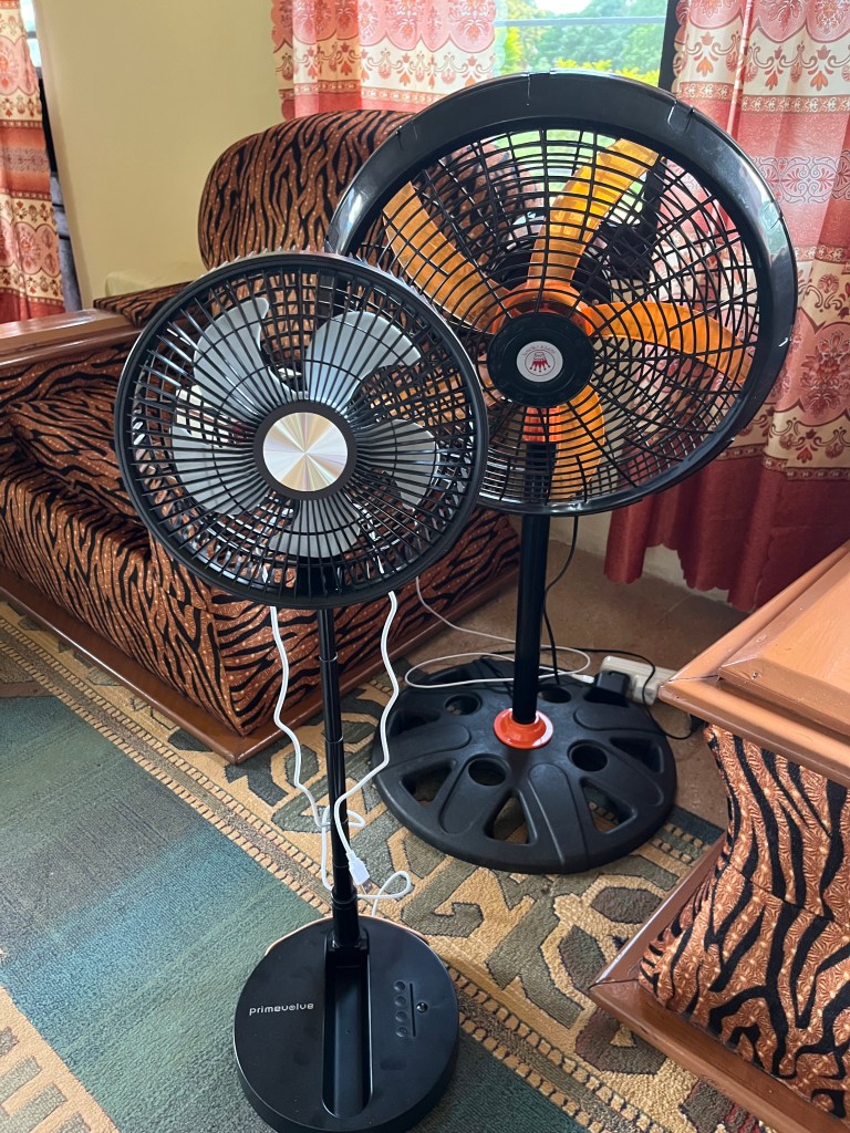 Nun ja, wir hoffen und beten und dann schauen wir mal – small small – wir haben das ohnehin nicht in der Hand. Gut, dass wir aus Deutschland drei Ventilatoren mit Akkubetrieb mitgebracht haben. Die können bis zu sechs Stunden ohne Strom laufen. Das hat uns des Nachts geholfen und wird hoffentlich auch später noch eine Hilfe sein.