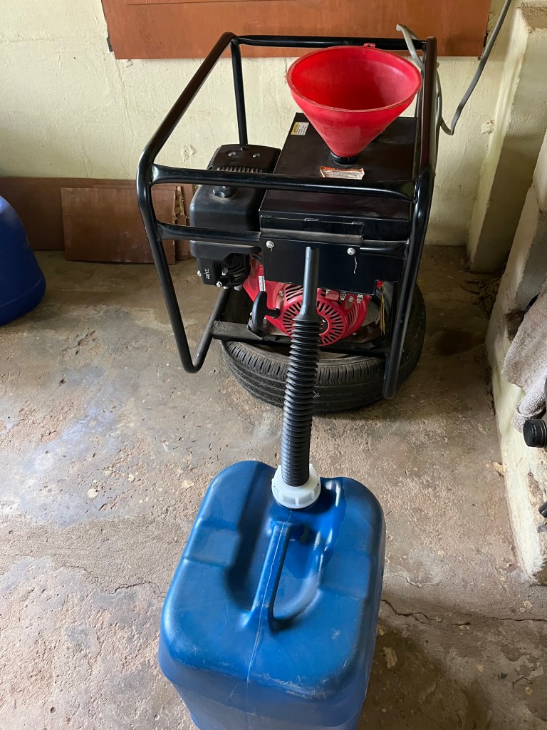 Zudem haben wir tatsächlich in Deutschland Einfüllstutzen für die Nachfüllkanister des Generators (Benzin) besorgt. So dass das ungenaue Nachfüllen und Benetzen der Umgebung mit Benzin ab sofort ein Ende hat – das ist gerade für Ralf ein Grund zu dankbarer Freude – jetzt ist es nur noch schweißtreibend – naja ändert am Grundzustand aber ohnehin nichts.