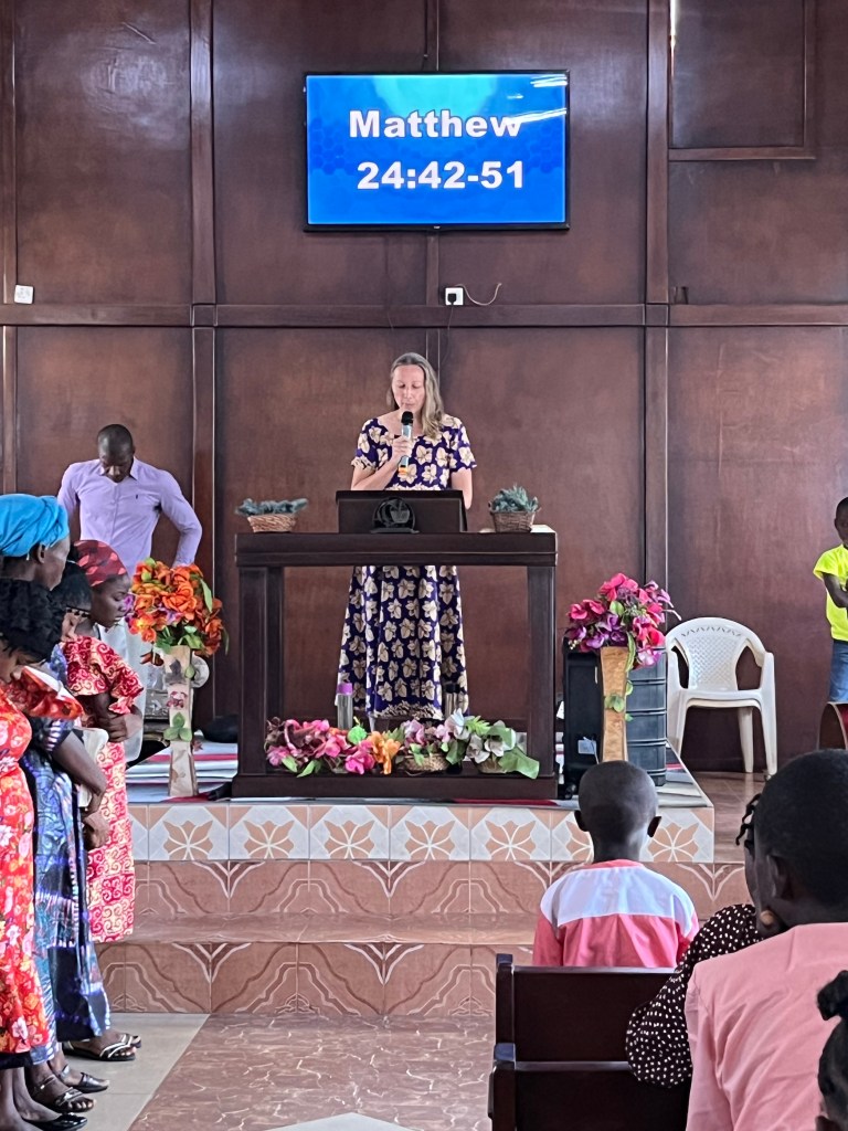 An diesem Sonntag war Christina zum Predigen eingeteilt und nicht nur wir waren skeptisch, mit wie vielen Gottesdienstbesuchern am Morgen wirklich zu rechnen wäre. Diese Gedanken hatten wohl auch andere und so wurde im Vorfeld immer wieder betont, wie wichtig ein Besuch von beiden Gottesdiensten ist.