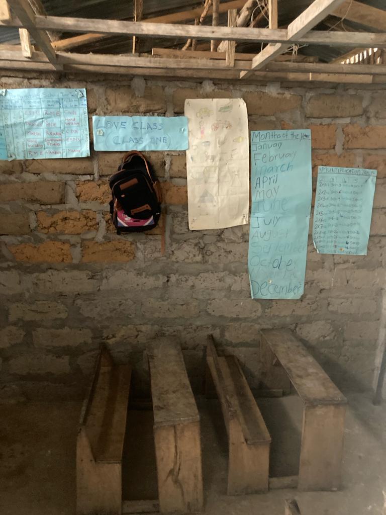 Die Pastorin mit ihrer Familie hat kurzerhand das Haus, in dem sie wohnen, halbiert. In der einen Hälfte leben sie. In der anderen Hälfte befindet sich die christliche Schule. Ein paar Bänke – eine Tafel – nackte Wände und durch Ritzen im Dach fällt die Beleuchtung. Beide Hälften sind nur durch einen Vorhang getrennt.