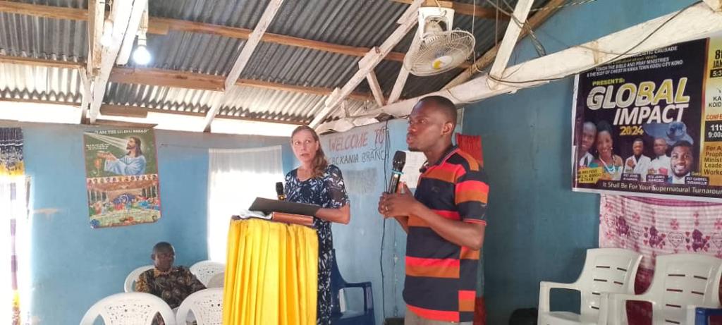 Sie hat sich sehr gründlich vorbereitet und hatte den Ehrgeiz, die Vorträge auf Krio zu halten. Einer der Gründe war der Tatsache geschuldet, dass in den Provinzen die meisten Leute kein Englisch können. So hat sie die Referate erarbeitet und dann mit ihrem Krio Lehrer Samuel – ein ehemaliger Student von ihr – übersetzt.
