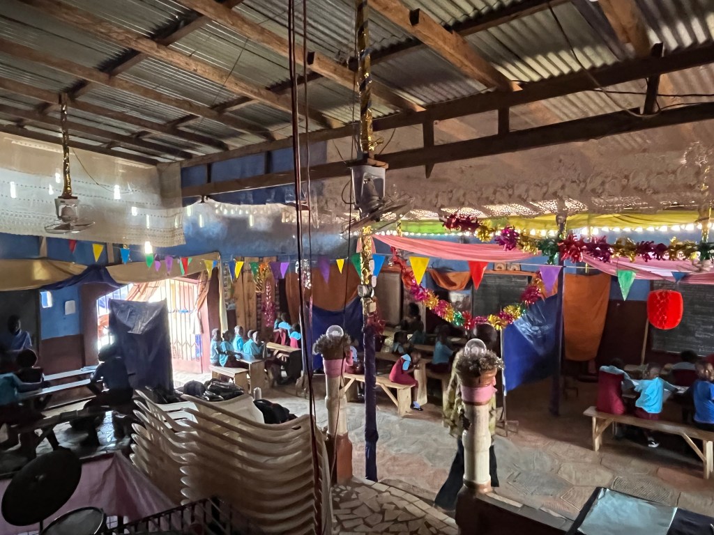 So machte sich Ralf mit John auf den Weg zur Gemeinde, in welcher die Schule betrieben wird. Für Gottesdienste und Bibel- bzw. Gebetstreffen muss stets alles umgebaut werden.