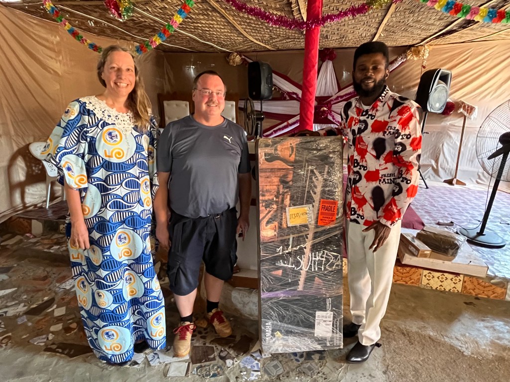 Als Christina zur Festwoche in Lunsar war, waren wir der Überzeugung, dort sollte das zweite Instrument hin. So brachte Ralf, als er zum Abholen von Christina fuhr, das Teil samt Zubehör mit und wir verabredeten mit Pastor Jonathan ein Treffen an seiner Gemeinde. Dieser wusste nicht, worum es geht und was auf ihn zukommt.