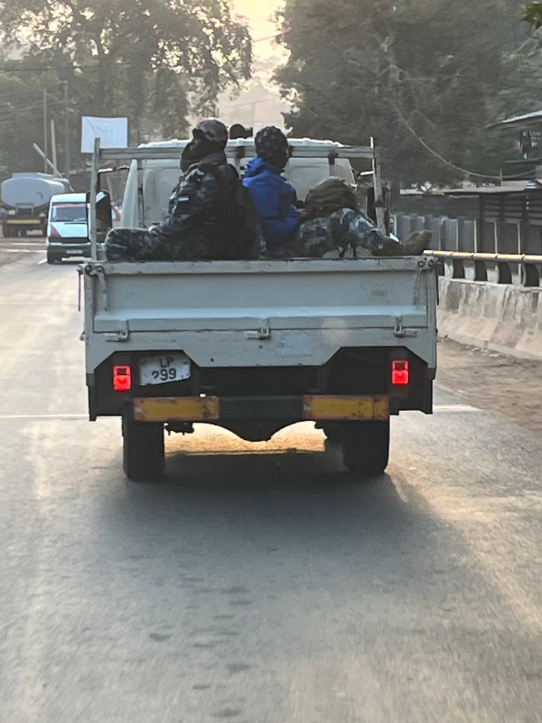 Überall stehen dann vermehrt Polizei und Militär und fordern alle auf, an der Seite halt zu machen und zu parken, bis andere Anweisungen kommen. Das geschieht mitunter recht rüde.