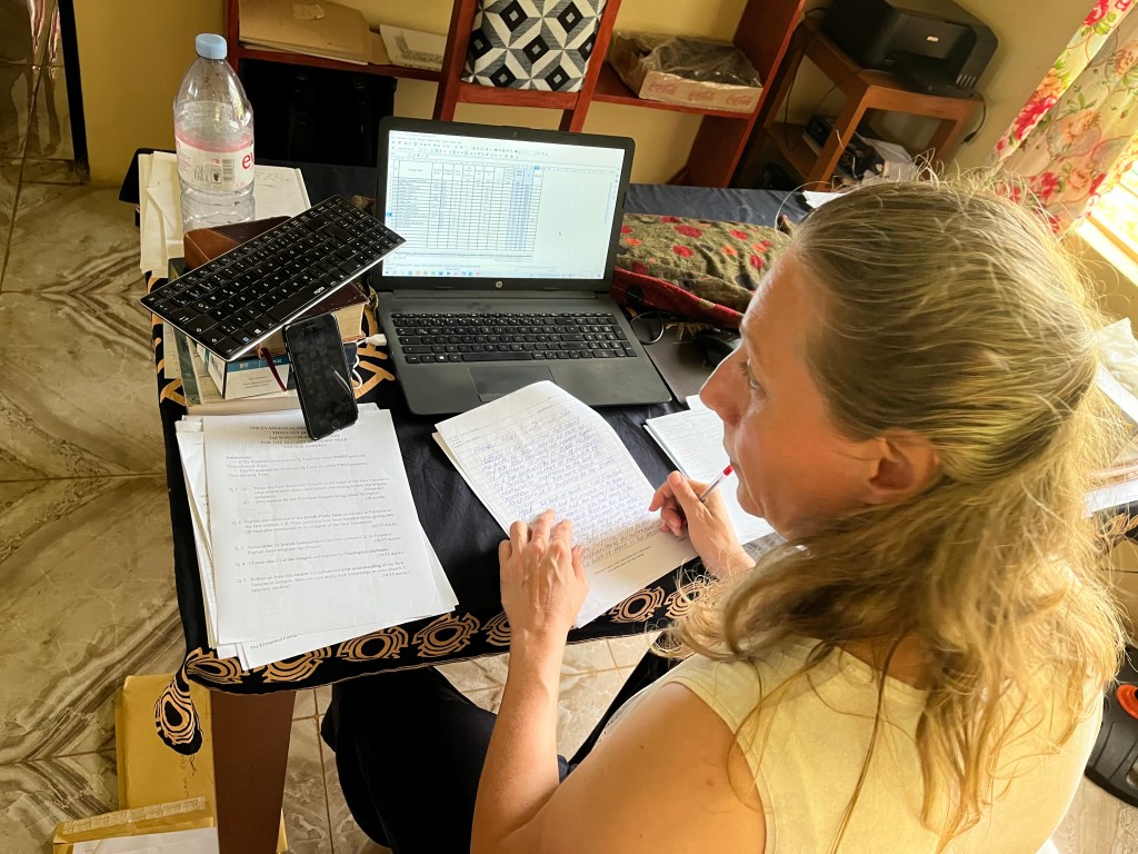 Es gibt natürlich Abgabetermine, aber wie alles hier – flexibel. So telefoniert und whatsappt Christina hinter den Leuten her, um ihnen noch eine und noch eine und noch eine Chance zu geben. Und dennoch haben eine ganze Reihe bis heute keine Arbeiten abgegeben … Bis kurz vor der Abreise fehlen von sieben Personen insgesamt neun Facharbeiten.