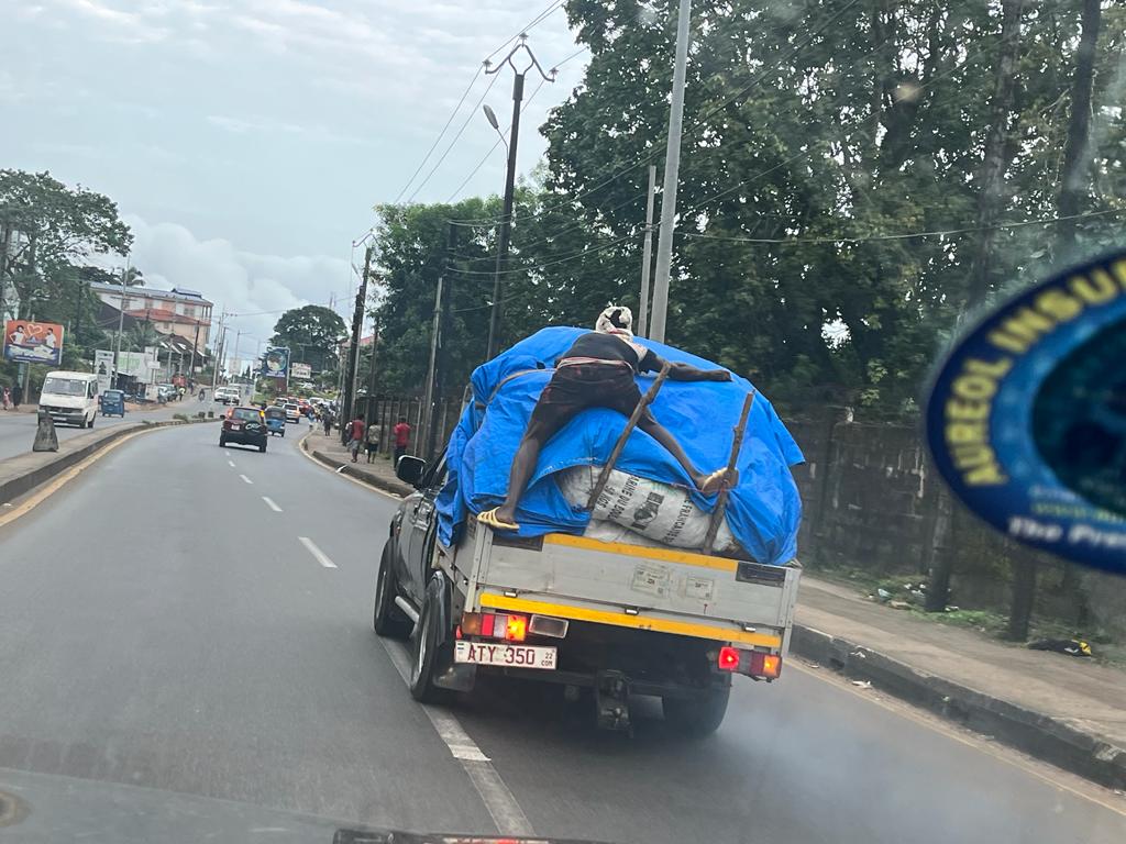 Koffer und Handgepäck wurden im Wagen verstaut. Amadu fuhr uns zu Seacoach nach Freetown.