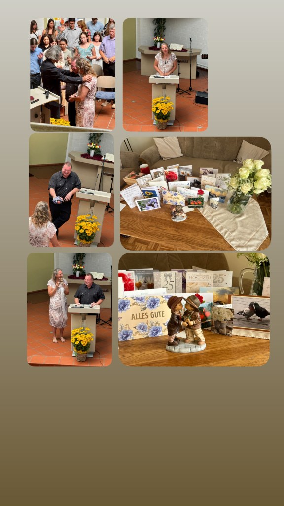 Und wie bei vielen anderen gab es auch bei uns ein Auf und Ab. Ringel Rangel Reigen. So sind für uns 25 Jahre Eheleben schon etwas Besonderes. Es ist ein Grund, gerade auch Gott danke zu sagen und den Tag zu feiern.