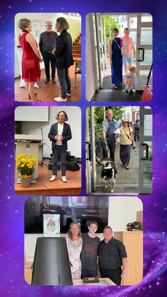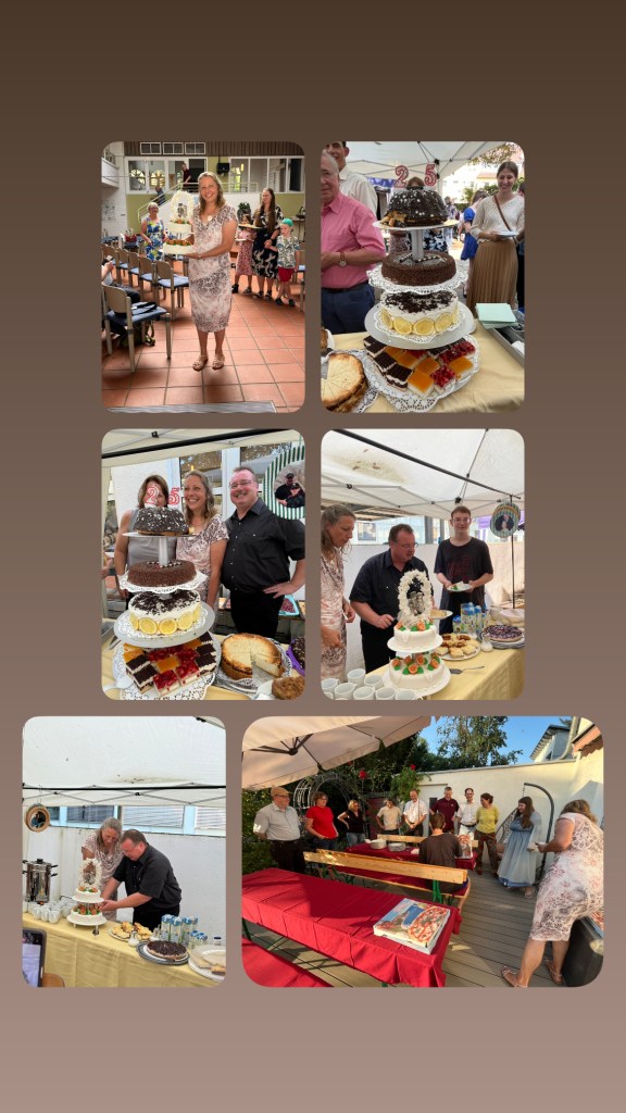 Die Feier in unserer ehemaligen Wirkstätte und geistlichen Heimat abhalten zu dürfen war auch ein Geschenk. Für all die Beiträge, das Mitwirken und Gestalten – Danke, Ihr seid super! Besonderer Dank an Elvira und Kirsten mit Euren Teams – womit haben wir das nur verdient! Und natürlich Valery und Lina für Ansprache und Musik – wunderbar!