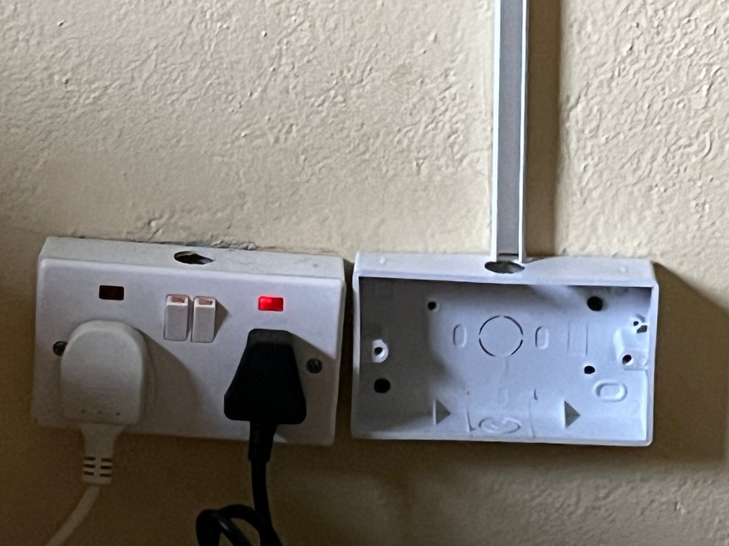 Zuerst wurden alle Steckdosen angebracht. Da die Kabel auf der Wand liegen würden, wurden Kabelleisten angebracht. Ebenso die Fassungen für die Lichter befestigt. Die Kabel wurden dann unter dem Dach zum Sicherungskasten verlegt. Dann wurden die Panels auf dem Dach befestigt und installiert.