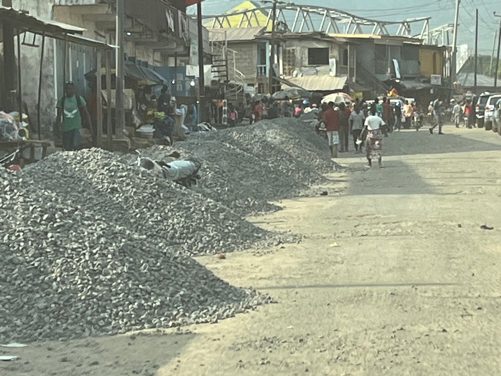 Was Hoffnung macht sind zum einen die Schotterhaufen – die Arbeit wurde also nicht komplett eingestellt. Aber auch die zahlreichen Reparaturmaßnahmen an etlichen Freetowner Straßen. Die heftige Regenzeit hat überall im Land Belag aufgerissen und Löcher hinterlassen – kleinere, aber auch große Abschnitte.