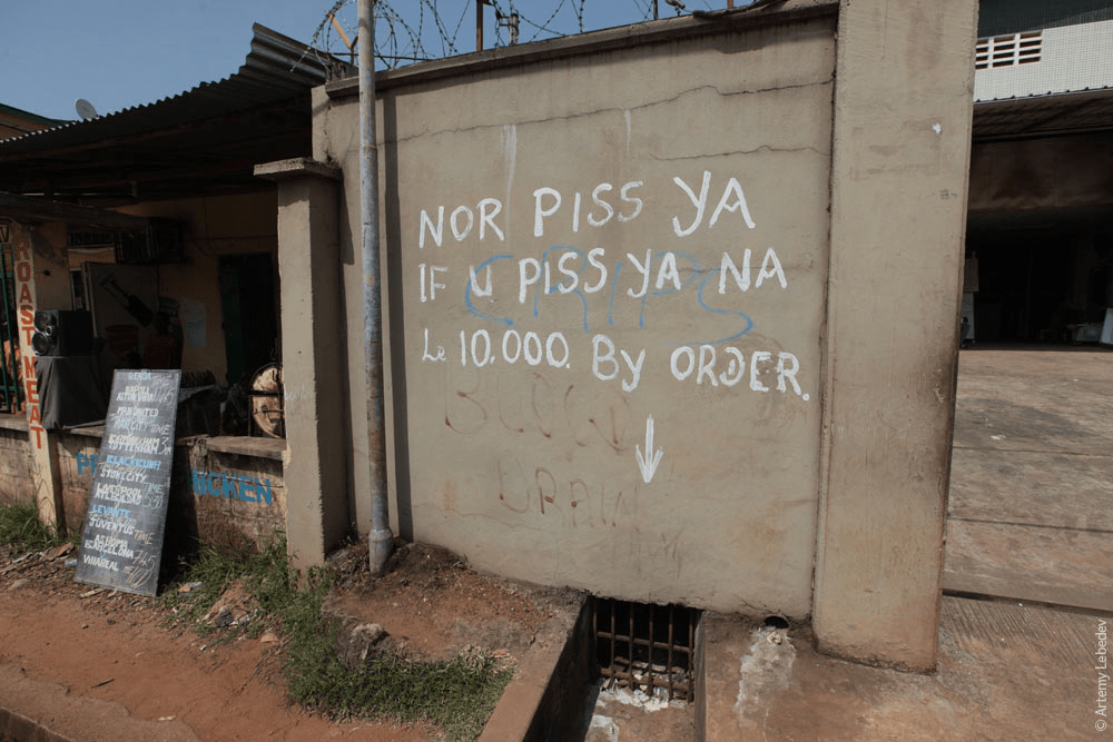 Als wir das erste Mal in Freetown mit dem Auto in der Innenstadt herumgefahren wurden, fiel uns immer wieder auf, wie Männer dastanden und pinkelten. Mitten auf belebten Straßen – kaum verborgen vor den Augen der breiten Öffentlichkeit. Wir lernten schnell, dass dies hier relativ normal ist.