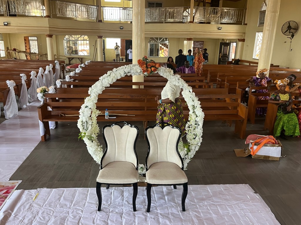 An der kirchlichen Hochzeit am Samstag wollten wir dann aber auf jeden Fall teilnehmen. Die sollte um 12.30 Uhr in der Kissy Baptist Church stattfinden (eine sehr große Gemeinde in Freetown).