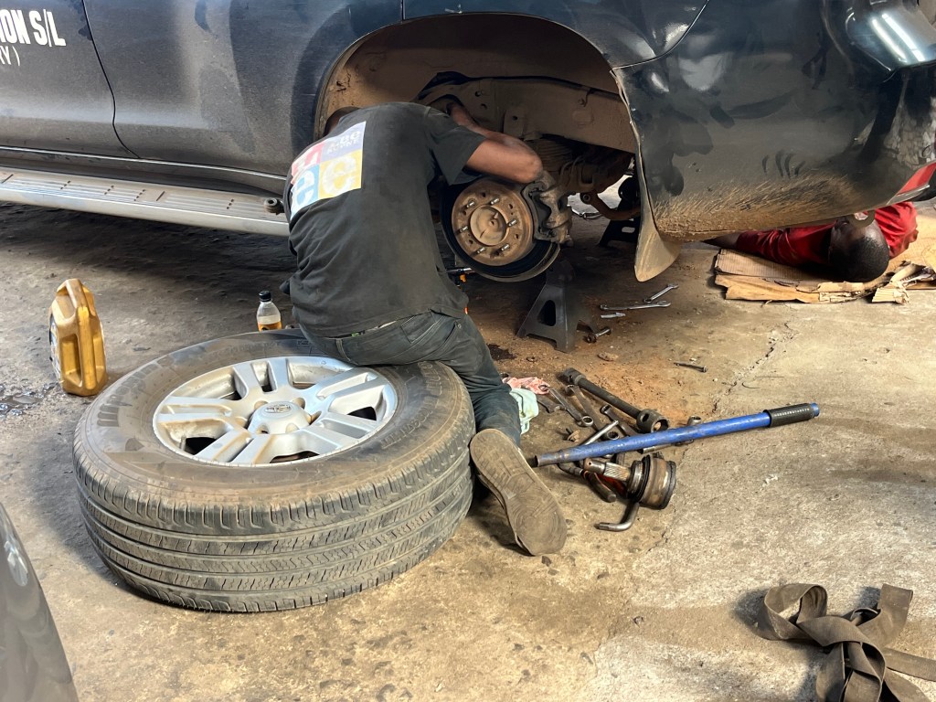 Beim Aus- und Umbau merkte der Fachmann dann noch an, dass der Fahrzeugboden etc. ganz schön rostig ist … Na was für eine Überraschung! Wundert einen so gar nicht bei dem hiesigen Klima und der dauerhaften schwülen Nässe während der Regenzeit. Solange der Sitz nicht durchfällt, ist alles gut. Ganz ehrlich, schau dir mal die anderen Fahrzeuge im Straßenverkehr von Sierra Leone an. Da hält oft einzig der Rost selbige zusammen.
